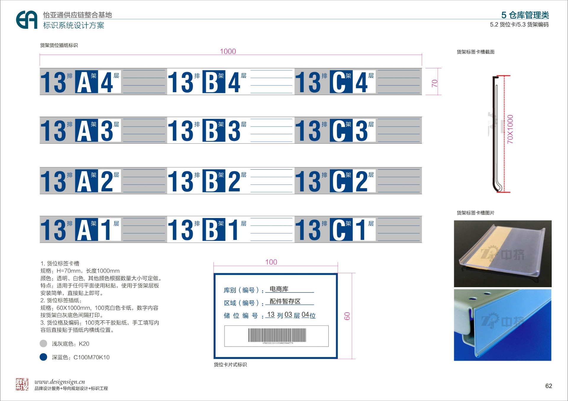 2、厂房室内标识:室内区域指示标识、功能区域标识、动线指示标识、货品管理标识、设备标识、行政管理标识