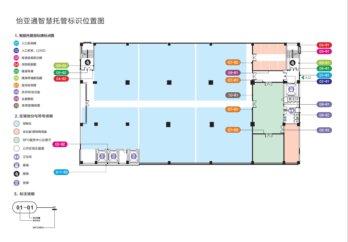 2、厂房室内标识:室内区域指示标识、功能区域标识、动线指示标识、货品管理标识、设备标识、行政管理标识